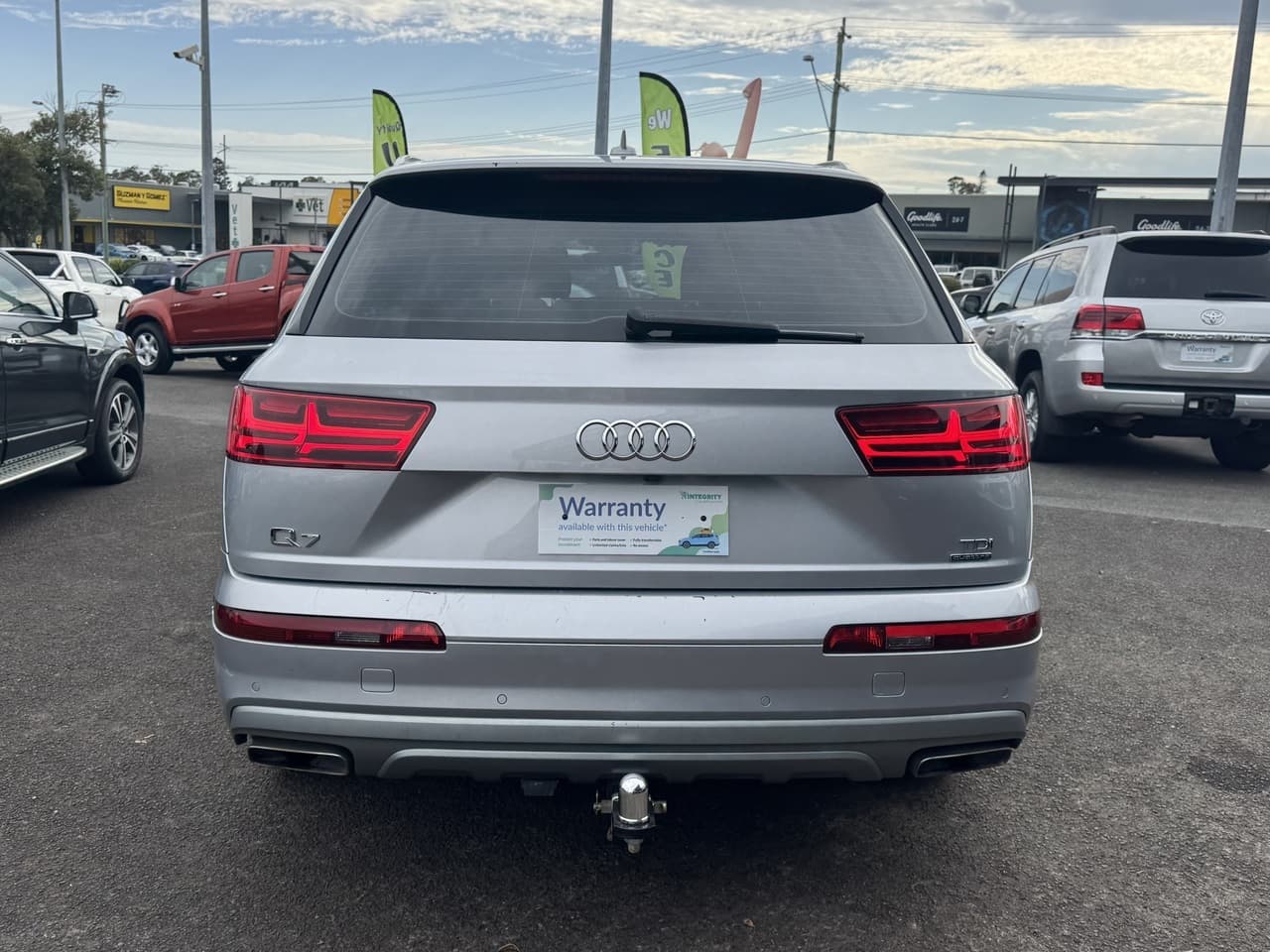 Vehicle Features: - 3.0L V6 turbo diesel engine - 8-speed Tiptronic automatic transmission - Quattro all-wheel drive system - Excellent towing capability - 7-seat configuration - Leather-appointed interior - Power-adjustable front seats - Heated front seats - Dual-zone climate control air conditioning - Rear air conditioning vents - Keyless entry & push-button start - Power tailgate - Cruise control - Multi-function steering wheel - Large infotainment display - Satellite navigation (GPS) - Bluetooth connectivity with audio streaming - USB & auxiliary inputs - Premium sound system - Digital driver information display - Power windows & mirrors - Remote central locking Safety Features: - Front, side & curtain airbags - Anti-lock Braking System (ABS) - Electronic Stability Control (ESC) - Traction Control - Electronic Brakeforce Distribution (EBD) - Parking sensors (front & rear) - Reversing camera - Hill descent control - Hill start assist - Trailer stability assist - ISOFIX child seat anchor points - Exterior Highlights: - Bold Audi styling with chrome accents - LED daytime running lights - Xenon headlights - Alloy wheels - Roof rails - Privacy glass - Front & rear fog lights Why Choose the Audi Q7?