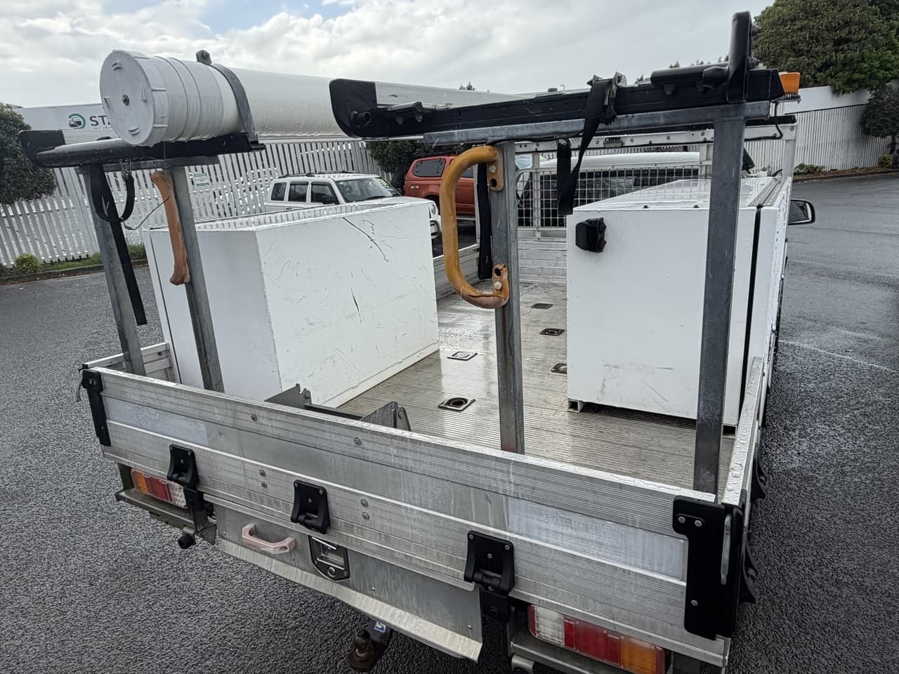 Fitted with all the right gear including bull bar, winch, spotlights, ladder racks, alloy tray with under-tray draw and toolboxes, plus 2x lockable toolboxes for secure storage. It also features aftermarket alloy wheels, side steps, tow bar, reverse camera, GPS and even orange flashing lights – ready for the job site.